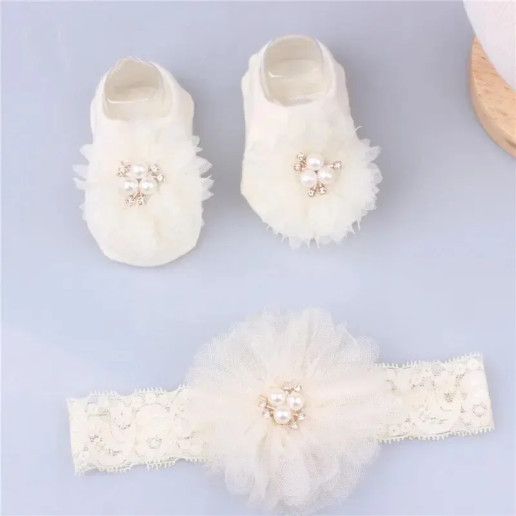 Дитячі текстильні пінетки з квіткою для дівчинки.