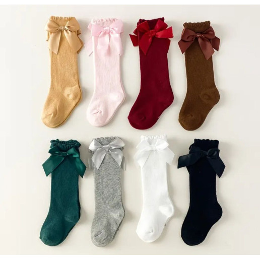 Детские гольфы с бантом на девочку 1-4 года. Высокие трикотажные носки с бантиком для девочек разного возраста. Вверху мягкая резинка, которая не доставляет дискомфорта ребенку.